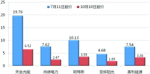 今年,不少光伏企業(yè)的掌舵人都有些心焦受產(chǎn)能過剩、歐美國家削減補(bǔ)貼等影響,光伏組件價(jià)格全線下跌。來自中國有色金屬協(xié)會(huì)硅業(yè)分會(huì)9月28日的統(tǒng)計(jì),國內(nèi)多晶硅現(xiàn)貨主流報(bào)價(jià)為35—39萬元/噸,比2月15日68—74萬元/噸的報(bào)價(jià)低了差不多一半;而光伏電池組件價(jià)格也在過去3個(gè)月內(nèi)下降了30%以上。最近3個(gè)月以來,中國光伏企業(yè)在美國股票市場(chǎng)股價(jià)也是全面下滑,有的股票甚至縮水超六成。
