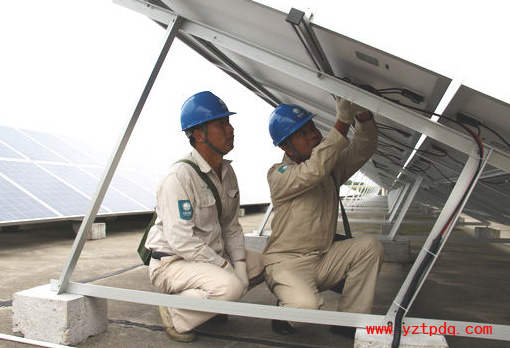 2014年9月16日,國網(wǎng)揚(yáng)州市江都供電公司工作人員深入基層,來到“江蘇光伏賣電第一人”朱啟杰以及其他分布式光伏發(fā)電用戶,為他們解決光伏發(fā)電和并網(wǎng)中遇到的問題,促進(jìn)江都分布式光伏發(fā)電產(chǎn)業(yè)的快速發(fā)展。目前,揚(yáng)州市江都區(qū)有32家分布式光伏發(fā)電用戶申請(qǐng)并網(wǎng),已經(jīng)并網(wǎng)20家,其中企業(yè)為3家,個(gè)人為17家,并網(wǎng)總?cè)萘繛?10千瓦,在江蘇省各縣(市、區(qū))名列前茅。圖為江都供電公司員工為揚(yáng)州永力電子公司120千瓦分布式光伏發(fā)電裝置檢修線路。