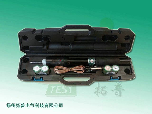 3、電源開關(guān)設(shè)在器身與頭部之間,任意方向旋轉(zhuǎn)90度,聽到“喀嗒”聲后即表示電源接通,反之為電源關(guān)閉。接通電源后綠燈亮,待紅燈亮(約3~5秒)即可通過頭部伸縮導(dǎo)電桿對避雷器計數(shù)器進行測試。