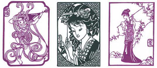 明清時(shí)期,揚(yáng)州剪紙有了新的發(fā)展變化。由于經(jīng)濟(jì)繁榮,揚(yáng)州民眾多講究穿戴,居室之內(nèi)大小物件都以繡花為美。至于結(jié)婚做壽、年節(jié)喜慶,所用繡品花樣更多。這些繡品都要用剪紙為底樣。由此,揚(yáng)州剪紙便與揚(yáng)州刺繡結(jié)合,形成一種風(fēng)格獨(dú)特的剪紙藝術(shù),這就是著名的“揚(yáng)州花樣”。www.23um.cn清代揚(yáng)州,城內(nèi)以剪紙為生的民間藝人頗多。嘉、道年間,著名藝人包鈞就以一剪之巧而聲明遠(yuǎn)揚(yáng)。在包鈞的剪下,話、鳥(niǎo)、魚(yú)、蝶無(wú)不神形兼?zhèn)洌巳雱?,因此有?ldquo;神剪”之譽(yù)。