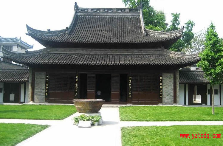 揚(yáng)州八怪紀(jì)念館由西方寺改建,八怪的代表人物金農(nóng)晚年即生活于寺中,以其故居為館,實(shí)在難得。西方寺建隋朝,原為避風(fēng)庵,面臨大江,據(jù)說(shuō)唐代時(shí),寺前掘得三尊石佛,唐太宗敕賜“西方禪寺”,不久僧人智完遷建該寺于今址。兵燹戰(zhàn)火,屢廢屢修,所幸明代大殿巍然不動(dòng)。大殿構(gòu)架多為楠木制成,其梁架很有特色,柱頂做卷殺,成覆盆形式。梁架全部露明造,正中縫作抬梁形式,為月梁形制,山面為穿逗式。大殿內(nèi)彩繪在揚(yáng)州地區(qū)少見(jiàn),因揚(yáng)州梁架都精于雕鏤,少施彩繪,但大殿內(nèi)卻遍施彩繪于梁架之上,甚至不用藻井,而以五彩遍裝,從僅存的小片彩繪分明看出,梁檁枋的彩繪為宋代風(fēng)格。而大片保存完好的則是明代早期彩繪風(fēng)格:構(gòu)圖鮮明,多用連枝圖案,花紋輪廓簡(jiǎn)單,色彩多用青綠及黃白互相襯托,表現(xiàn)花紋和底色。修復(fù)時(shí)采取了“以舊還舊”的古跡保護(hù)理論,盡量不損壞梁架造型及彩繪,使今人能窺見(jiàn)宋明的建筑藝術(shù)。王振世的《揚(yáng)州覽勝錄》載:“清乾隆中,仁和畫師金冬心先生游揚(yáng)州,嘗客寺中,后歿于世。”金農(nóng)晚年信佛,專事畫佛寫經(jīng),如今的金農(nóng)寄居室內(nèi)復(fù)原了他的起居繪畫的陳設(shè)。他在寺中曾題詩(shī)壁上:“無(wú)佛又無(wú)僧,空堂一盞燈。杯貪京口酒,書殺剡中藤。占?jí)艚穸紤?yīng),諛人老未能。此處何所想?池上鶴窺冰。”看來(lái)當(dāng)時(shí)境況甚為凄涼,畫家孤燈獨(dú)臥,形只影單,但可敬者“諛人老未能”,決不趨炎附勢(shì),寧可“池上鶴窺冰”,保持清雅和高潔,以其人品藝品方面贏得人們的緬懷。可以告慰先生的是,如今他的故居已成紀(jì)念他們的地方——八怪的紀(jì)念館,其中八怪的身平業(yè)績(jī),飄香的翰墨都使后人瞻仰到八怪的赫赫風(fēng)采。