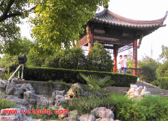 八寶亭坐落在揚(yáng)州寶應(yīng)城中心的縱棹園里。進(jìn)了素磚。高瓦的園門,走過垂柳依依的石路,踏上溪流涓涓的小橋,那飛檐翹角、凌然欲飛的八寶亭就躍人了你的眼簾。遠(yuǎn)遠(yuǎn)地,趙樸初先生書寫的餾金大字“八寶亭”赫然醒目。拾階而上,佇足亭內(nèi),八面來風(fēng),近聞鳥語花香,遠(yuǎn)眺旭日東升,悠悠然如臨仙境。