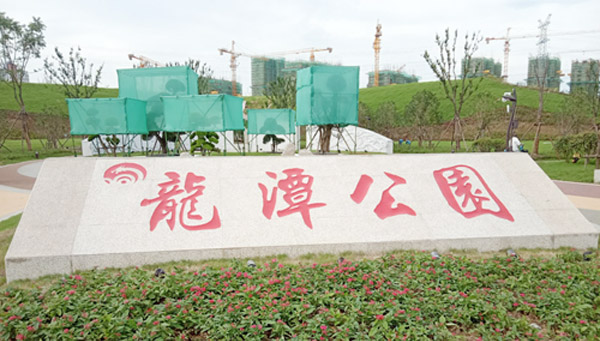 龍?zhí)豆珗@設(shè)施齊全、環(huán)境優(yōu)美,園內(nèi)建有各類園林景觀、小品、園路、停車場、綠地等,總面積為123500平方米,其中硬地面積為27700平方米,水域面積23400平方米,配套服務(wù)用房建筑面積3780
